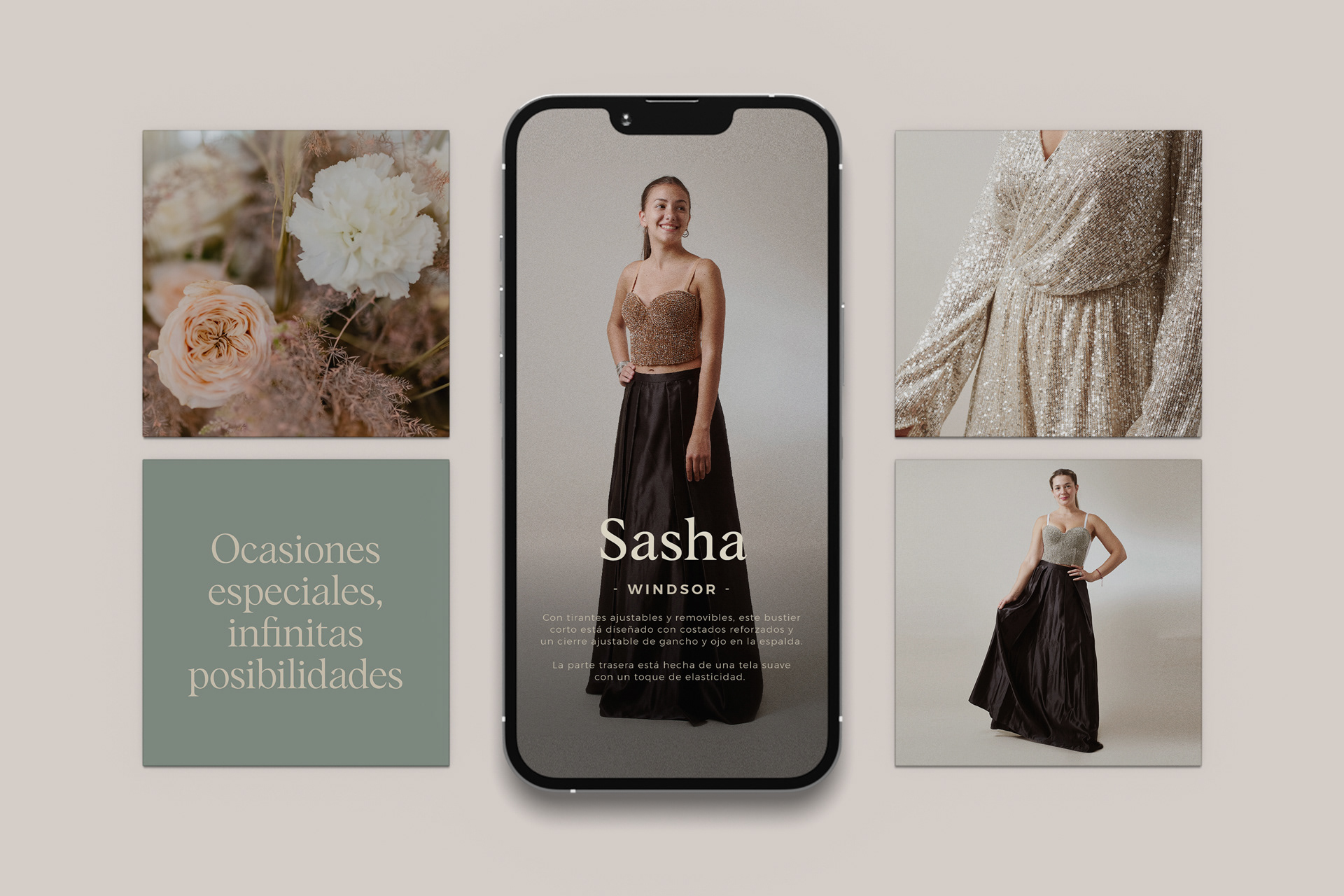 Diseño de Identidad de marca y piezas gráficas para alquiler de vestidos de fiestas. Buenos Aires